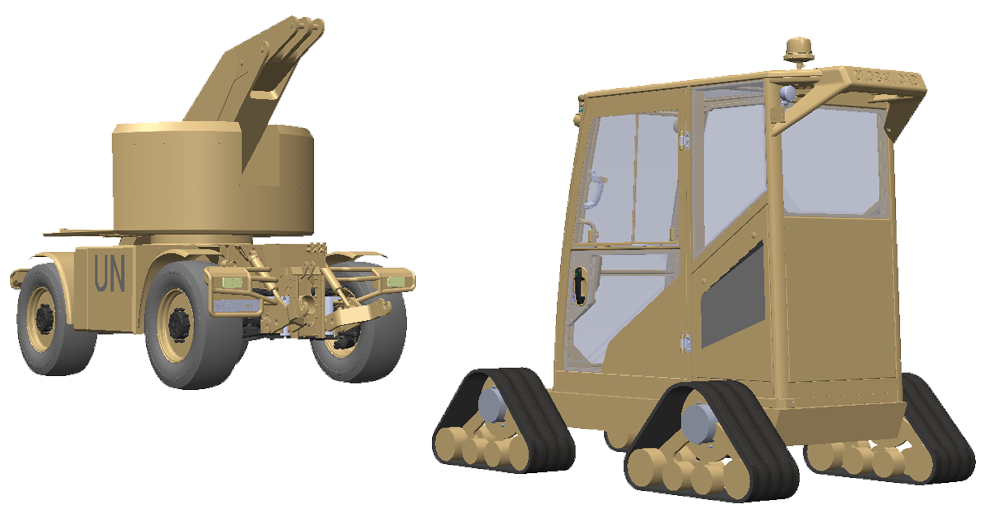 Cab mountable and de-mountable by 1 operator and the machine itself within 30 minutes